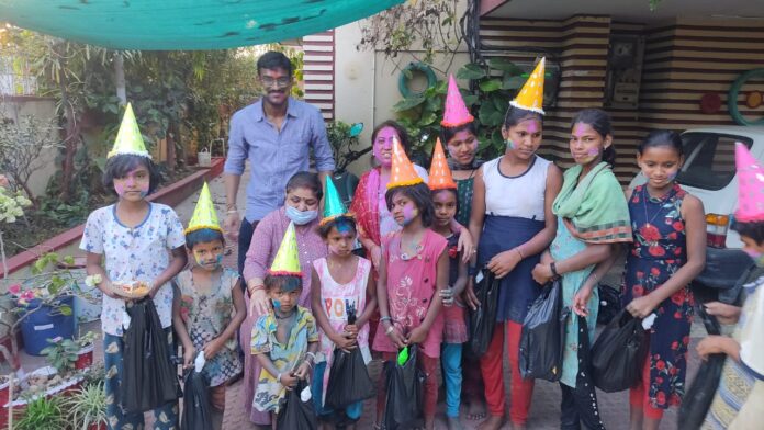 बिलासपुर। होली के पांचवें दिन आश्रयनिष्ठा वेलफेयर सोसायटी ने रंग पंचमी का पर्व उल्लासपूर्वक मनाया। इस मौके पर संस्था ने विनोबा नगर साँई मंदिर के पास मौजूद भिक्षुक बच्चों के साथ रंग ग़ुलाल की होली खेलकर उनकी बेनूर जिंदगी में रंग भर दिया। कार्यक्रम की शुरूआत संस्था की सचिव अरुणिमा मिश्रा ने बच्चों को रंग ग़ुलाल लगाकर औऱ रंगीन टोपियां पहनाकर कीं।