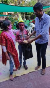 टीम की संरक्षिका रेणु गौतम ने बच्चों को रंग ग़ुलाल औऱ नमकीन मिठाई के पैकेट बांटे औऱ आशीर्वाद दिया। उन्हें शिक्षा की मुख्यधारा से जुड़ने को प्रेरित किया औऱ इसके लिए मदद का आश्वासन भी दिया। इस अवसर पर अध्यक्ष नितिन त्रिपाठी, सचिव अरुणिमा मिश्रा, गोविंद, मधु त्रिपाठी, लता कश्यप व हिमांशु कश्यप उपस्थित थे।