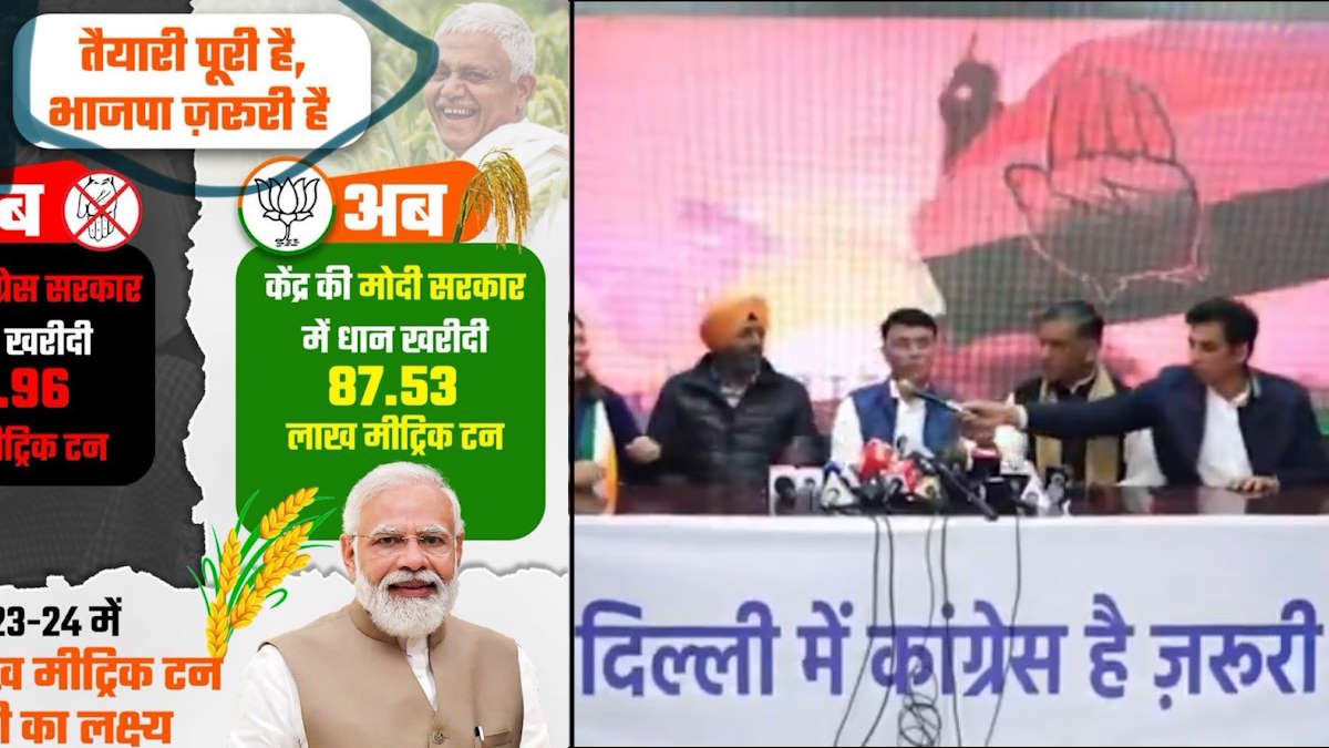 पंकज झा ने अपने पोस्ट के साथ फोटो लगाया है, जिसमें एक तरफ भाजपा को पोस्टर है, जिसमें ‘तैयारी पूरी है, भाजपा जरूरी है’, लिखा है, वहीं दूसरी ओर कांग्रेस के दिल्ली विधानसभा चुनाव प्रचार के लिए इस्तेमाल किए जा रहे ‘दिल्ली में कांग्रेस है जरूरी’ का स्लोगन दिखाया है.
