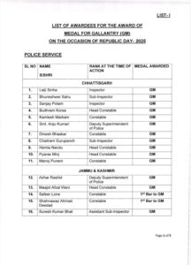 इन्हें मिलेगा वीरता पुरस्कार –