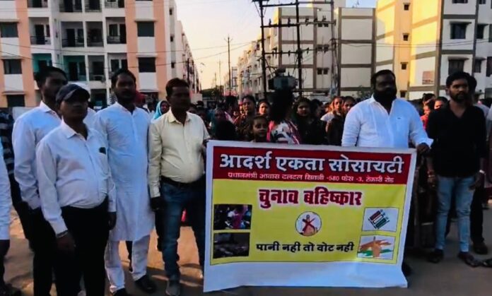 जिसे लेकर कई बार निगम जोन कार्यालय क्रमांक 9 में धरना प्रदर्शन किए जनप्रतिनिधियों से गुहार लगा लगाकर थक गए रहवासियों का आरोप है कि हम लोग एक एक बूंद पानी के लिए तरसते हैं सरकार वादे करती है हर घर नल योजना की साथ ही साथ उन लोगों का आरोप है कि बिल्डिंग बनाने में भी भ्रष्टाचार हुआ है दीवारें फट रही है, छतों से छप्पर टूट रहा है, लेकिन हम लोगों की कहीं सुनवाई नहीं हुई थक हार कर हम लोगों ने चुनाव का बहिष्कार करना पड़ रहा है दिया असुविधाओं के अंबार से परेशान लोगों ने कॉलोनी के बाहर चुनाव बहिष्कार का बैनर लगाकर प्रदर्शन किया