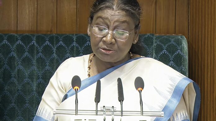 राष्ट्रपति ने आगे कहा कि सरकार का लक्ष्य विकसित भारत बनाना है। देश में 25 करोड़ आबादी को गरीबी रेखा से ऊपर लाया गया है। 75 साल से अधिक उम्र के लोगों, जिन्हें केवल पेंशन मिलती है, आयकर दाखिल करने के संबंध में उनको खुद निर्णय लेने का अधिकार दिया गया है। आठवें वेतन आयोग के गठन का फैसला लिया गया है। घर के लोन पर सब्सिडी दी जा रही है। महिलाओं को सशक्त बनाने का प्रयास जारी है। हमारी सरकार वीमेन लेड डेवलपमेंट पर विश्वास करती है।