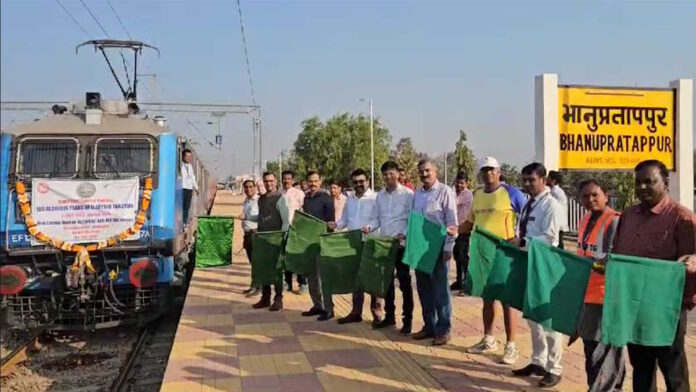 भारत में इलेक्ट्रिक रेल सेवा की आज 3 फ़रवरी को 100वीं वर्षगांठ मनाई जा रही है. इस अवसर पर भानुप्रतापपुर-अंतागढ़ रेल खंड पर आज इलेक्ट्रिक गुड्स ट्रेन चलाई गई. इसके साथ ही पूरा दक्षिण पूर्व मध्य रेलवे (SECR) जोन इलेक्ट्रिफाई हो गया है.