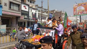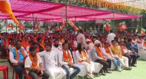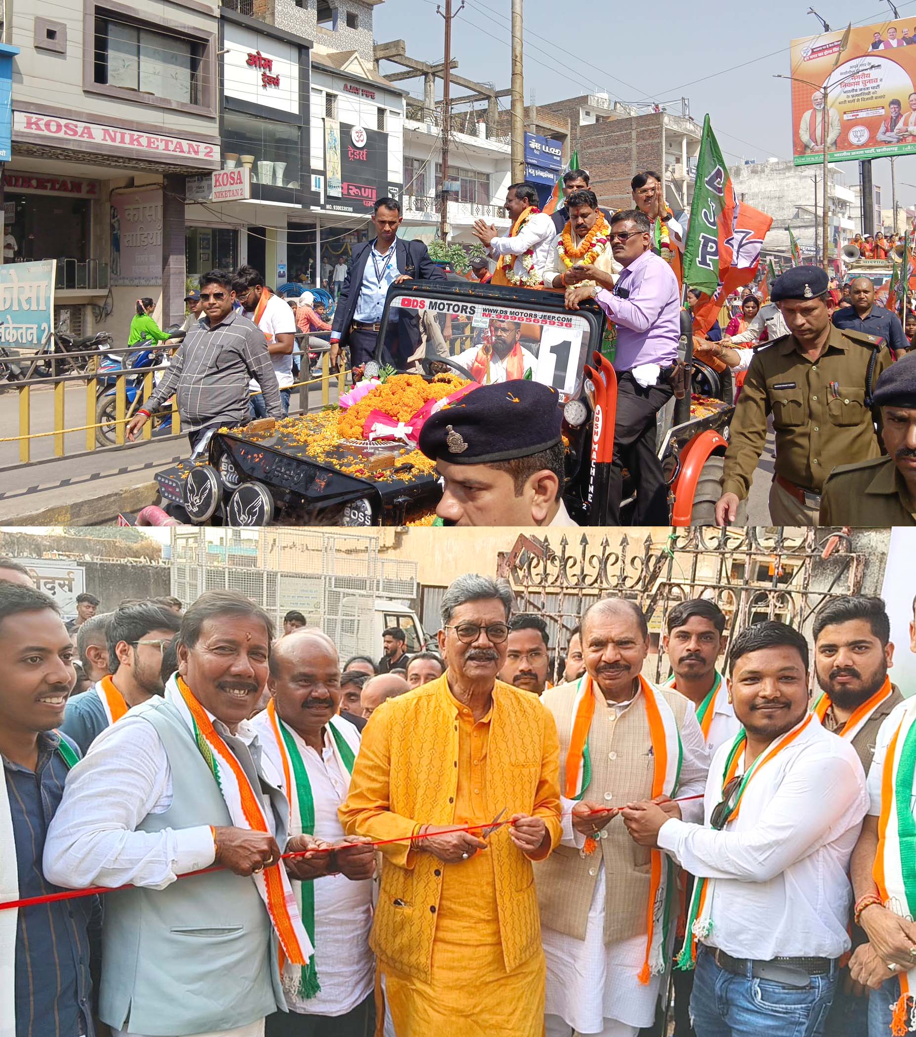 वहीं दूसरी ओर सोमवार को भाजपा ने भी कार्यकर्ता सम्मेलन के रूप में शक्ति प्रदर्शन किया। जिसमें छत्तीसगढ़ शासन के उप मुख्यमंत्री एवं गृहमंत्री विजय शर्मा उपस्थित रहे। भाजपा ने बरपाली चैक से रैली निकालकर नगर भ्रमण करते हुए सरस्वती शिशु मंदिर में कार्यक्रम का समापन किया। जहां कार्यकर्ता सम्मेलन को मंचस्थ अतिथियों ने संबोधित किया। अंत में मुख्य अतिथि विजय शर्मा ने कार्यकर्ताओं को संबोधित कर भाजपा के प्रत्याशी प्रदीप नामदेव और सभी 27 वार्ड पार्षद प्रत्याशी को चुनाव जीतने अपील की।