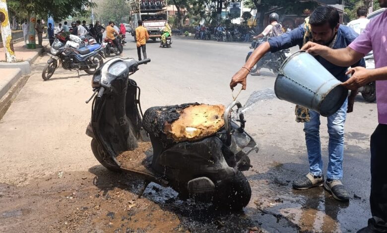 बिलासपुर। शहर के वेयरहाउस मोड़ पर चलते चलते एक एक्टिवा में अचानक आग लग गई। आसपास के लोगों ने आग पर काबू पाने का बहुत प्रयास किया। हालांकि मौके पर हर ब्रिगेड की गाड़ी भी पहुंची थी। लेकिन उसके पहले ही आसपास के लोगों ने एक्टिवा पर बाल्टियों से पानी डालकर आग बुझा दी। इसमें किसी के झुलसने की जानकारी नहीं है। देखे वीडियो