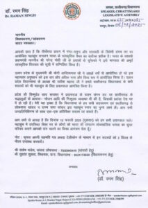 विधानसभा अध्यक्ष ने पत्र में बताया कि लाखों वर्षों से आयोजित हो रहे सनातन धर्म के इस महानतम अनुष्ठान को उत्तर प्रदेश के मुख्यमंत्री योगी आदित्यनाथ ने इस बार और अधिक भव्य रूप में आयोजित किया है. यही नहीं संगम तट पर छत्तीसगढ़ के श्रद्धालुओं के लिए विष्णुदेव साय सरकार की ओर से आवास व भोजन की निःशुल्क व्यवस्था की है, जिसकी पूरे देश में प्रशंसा हो रही है.