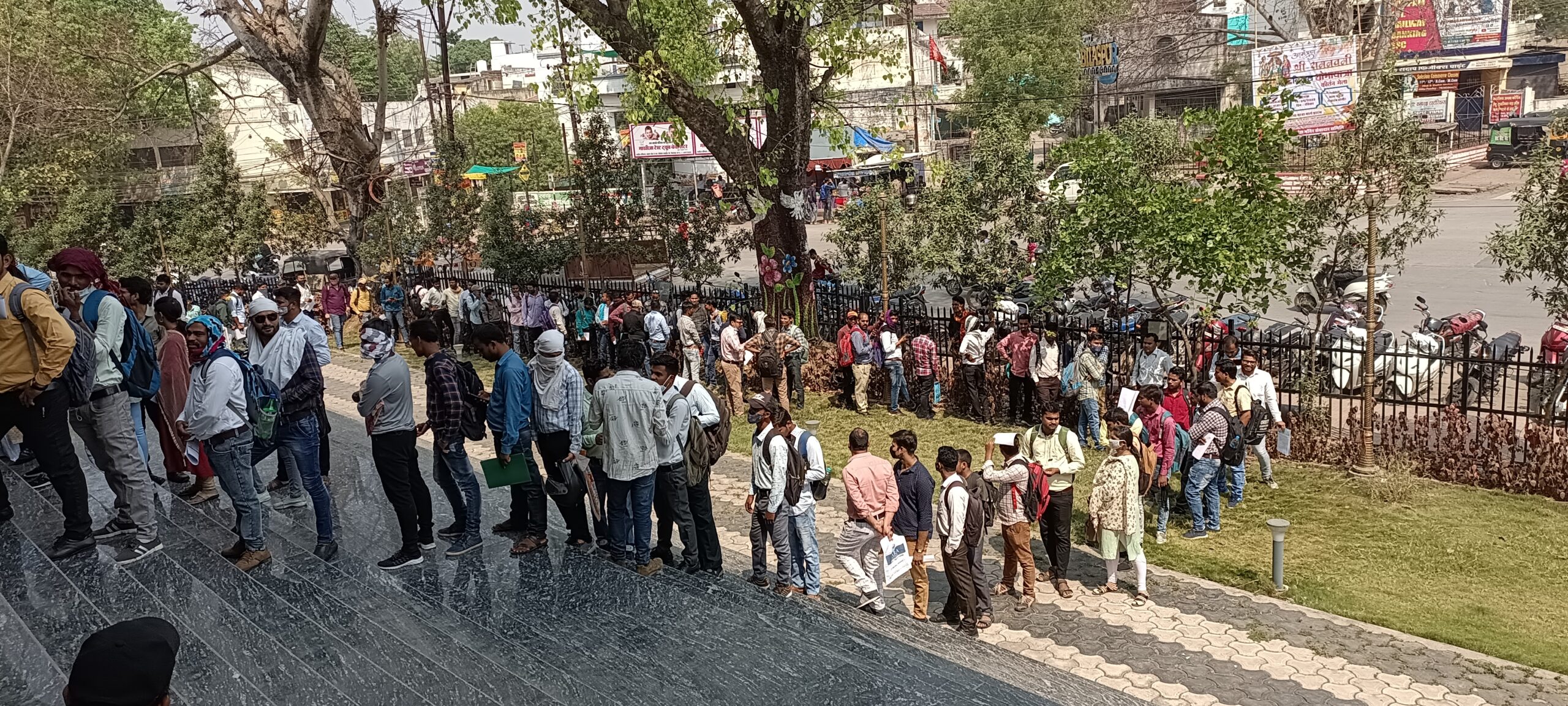 सुबह 8 बजे से अभ्यर्थियों को अपने सारे दस्तावेज के साथ नूतन चौक स्थित सेन्ट्रल लाइब्रेरी पहुंचने का जिक्र आवेदन में किया गया है। सीएमएचओ कार्यालय में जगह नहीं होने की स्थित में सेन्ट्रल लाइब्रेरी में आवेदन लेने सहित भर्ती की पूरी प्रक्रिया जारी थी। पंजीयन की प्रक्रिया के लिए अभ्यर्थी भरी धूप में लाइन लगाकर अपनी पारी का इंतजार करते रहे। विभाग के नुमाइंदे ना ही धूप से बचने कोई व्यवस्था कर रहे थे और ना ही पीने की पानी की कोई व्यवस्था थी। भारी अव्यवस्था के बीच लोग नौकरी पाने की उम्मीद में भूखे प्यासे भरी धूप में लाइन लगाने मजबूर दिखे।