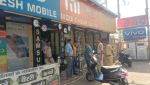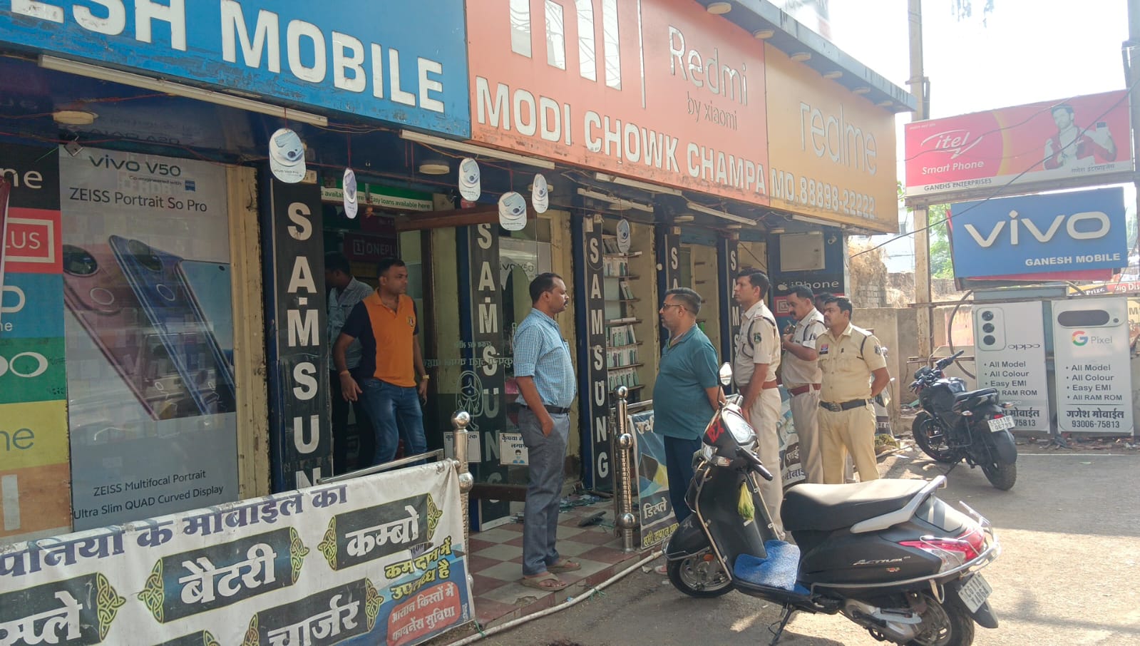 वासु सोनी चांपा। नगर के बीच सुभाष चौक में स्थित गणेश मोबाइल में देर रात लाखों की मोबाइल चोरी हुई है। जांजगीर से चांपा आने वाले रपटा की ओर से दो बाइक में सवार 5 चोर देर रात सुभाष चौक स्थित गणेश मोबाइल में दुकान का ताला तोड़कर लाखों रुपए के मोबाइल ले उड़े। देर रात नगर के बीच हुई चोरी ने दुकानदारों की नींद उड़ा दी है। वही दुकान में लगे सीसीटीवी में चोरों की सारी वारदात कैद हो चुकी है। फिलहाल चांपा पुलिस जांच में जुट गई है।