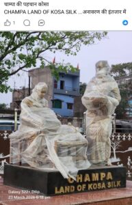 आपको बता दें कि जांजगीर चांपा जिले सहित पूरे राज्य और देश भर में चांपा नगर को कोसा, कांसा, कंचन की नगरी के नाम से जाना और पहचाना जाता है। वहीं चांपा रेलवे स्टेशन में चांपा लैंड ऑफ कोसा सिल्क नाम से मूर्ति का अनावरण करने की तैयारी की जा रही है। नगर की जनता के बीच कौतूहल निर्मित हो चुका है कि आखिर कोसा कांसा कंचन की नगरी में सिर्फ चांपा लैंड ऑफ कोसा सिल्क नाम लिखे हुए मूर्ति नगर के मुख्य रेलवे स्टेशन में लगाने के पीछे किसकी मंशा होगी?