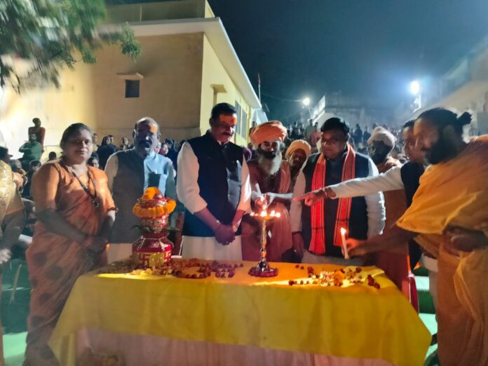 चाम्पा । मकर संक्रांति के अवसर पर पुण्य सलिला हसदेव नदी डोंगाघाट के तट पर चाम्पा सेवा संस्थान के द्वारा हसदेव गंगा आरती का आयोजन किया गया। कार्यक्रम का शुभारंभ मुख्य अभ्यागत विधानसभा छ.ग. के नेता प्रतिपक्ष एवं क्षेत्रीय विधायक नारायण चंदेल सहित उपस्थित अतिथियों नगरपालिका अध्यक्ष जय थवाईत, शासकीय एम. एम. आर. महाविद्यालय चाम्पा के प्रभारी प्राचार्य बी.डी. दीवान, राज्य युवा आयोग के पूर्व उपाध्यक्ष कार्तिकेश्वर स्वर्णकार, अनुविभागीय अधिकारी राजस्व श्रीमती आराध्या राहुल कुमार के द्वारा दीप प्रज्वलन के पश्चात हुआ। कार्यक्रम के प्रारंभ में विप्रगणों का सम्मान अतिथिगण के द्वारा किया गया इसके पश्चात अतिथिगण का सम्मान कौसेय शाल, श्रीफल, पुष्पगुच्छ एवं पुष्पहार से संस्थान के पुरूष एवं महिला विंग के सदस्यों द्वारा किया गया। श्री बजरंग कीर्तन मंडली सोनारपारा चाम्पा के गायकों द्वारा सुमधुर भजनों की प्रस्तुति के पश्चात हसदेव गंगा आरती का शुभारंभ हुआ। विप्रगण द्वारा स्वस्ति वाचन के मध्य चारों में धूप, दीप, चंवर, कपूर, शंख, वस्त्र, आचमन के माध्यम से छोटी आरती के पश्चात महाआरती की गई। जिसमें विप्रगण के द्वारा भव्य महाआरती के पश्चात अतिथिगण सहित उपस्थित जन समूह ने भी महाआरती में अपनी सहभागिता निभाई। इस बीच शंखध्वनि, मृदंग, मंजीरों के लय-ताल के साथ गंगा माता की आरती, शिव-तांडव वातावरण में गुंजायमान होने से उपस्थित व्यापक जन-समूह में श्रध्दा – भक्ति पराकाष्ठा पर थी।