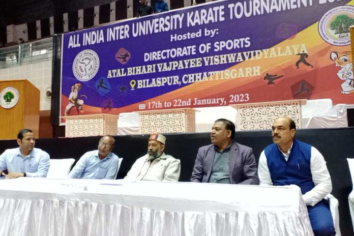 बिलासपुर। अटल बिहारी वाजपेई विश्वविद्यालय के अथक प्रयास से बिलासपुर को अखिल भारतीय अंतर विश्वविद्यालय महिला एवं पुरुष कराटे प्रतियोगिता की मेजबानी का अवसर मिला है। स्वर्गीय बी आर यादव इनडोर स्टेडियम बहतराई में 17 से 22 जनवरी तक होने वाले प्रतियोगिता में देशभर के 188 विश्वविद्यालय से 23 सौ खिलाड़ी और 500 प्रबंधक एवं प्रशिक्षक बिलासपुर पहुंच चुके हैं ।इस प्रतियोगिता के सफल संचालन के लिए 150 ऑफिशियल नियुक्त किए गए हैं।