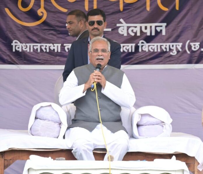 वासु सोनी बिलासपुर। मुख्यमंत्री भूपेश बघेल ने कहा कि किसानों और मजदूरों की जेब में पैसा जाए, यही सरकार का उद्देश्य है। पहले किसानो का कर्जा बढ़ते जा रहा था। लोग किसानी छोड़ रहे थे। इसे देखते हुए हमने सरकार बनते ही दो घंटे में किसानो का कर्जा माफ किया। खेती किसानी को मजबूत बनाने न्याय योजनाओं की शुरूआत की। श्री बघेल आज बिलासपुर जिले के तखतपुर विधानसभा के ग्राम बेलपान में आयोजित भेंट मुलाकात में ग्रामीणों को सम्बोधित कर रहे थे। उन्होंने इस अवसर पर गनियारी को नगर पंचायत बनाने, ग्राम संकरीभांटा में मिनी स्टेडियम का निर्माण कराने के साथ बेलपान मंदिर व मेला स्थल को पर्यटन स्थल के रूप में विकसित करने सहित कई घोषणाएं की।