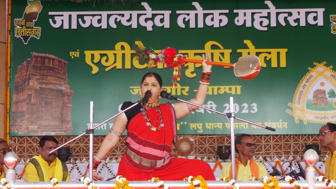 जाज्वल्यदेव् लोक महोत्सव का शुभारंभ आज से हो गया है। तीन दिवसीय महोत्सव में सांस्कृतिक छटा की शुरुआत हो चुकी है। पहले दिन प्रसिद्ध पंडवानी गायिका श्रीमती ऋतु वर्मा ने शानदार प्रस्तुति से समा बाँधा। अपने भाव भंगिमाओं से प्राचीन गाथाओं के कालखंड को प्रस्तुत कर तालियां बटोरी। स्थानीय कलाकारों ने भी आर्केस्ट्रा से लोगों का मनोरंजन किया। महोत्सव स्थल पर पंचायत एवं ग्रामीण विकास विभाग,छत्तीसगढ़ राज्य ग्रामीण आजीविका मिशन बिहान, सी-मार्ट, वन एवं जलवायु परिवर्तन विभाग, महिला एवं बाल विकास विभाग, स्वास्थ्य एवं परिवार कल्याण विभाग, आयुष विभाग, आदिवासी विकास विभाग, स्कूल शिक्षा विभाग, लोक स्वास्थ्य यांत्रिकी विभाग,ग्रामोद्योग व हथकरघा विभाग, विधिक साक्षरता सहित अन्य विभागों द्वारा स्टॉल लगाकर विभिन्न योजनाओं की जानकारी दी जा रही है। नगर पालिका द्वारा स्व सहायता समूह के द्वारा तैयार उत्पादों की जानकारी दी गई है।