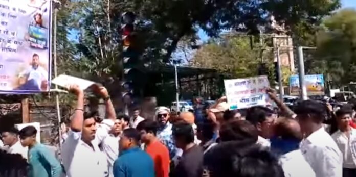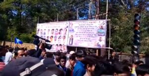 बिलासपुर। नेहरू चौक में धरना स्थल पर लगे बैनर पोस्टर हटाने की कार्रवाई करने पहुंची निगम की टीम और अनुसूचित समाज के लोगों के बीच जमकर बवाल हो गया, समाज के द्वारा नेहरू चौक के पास बैनर पोस्टर लगाकर एक दिवसीय कार्यक्रम का आयोजन किया गया था।