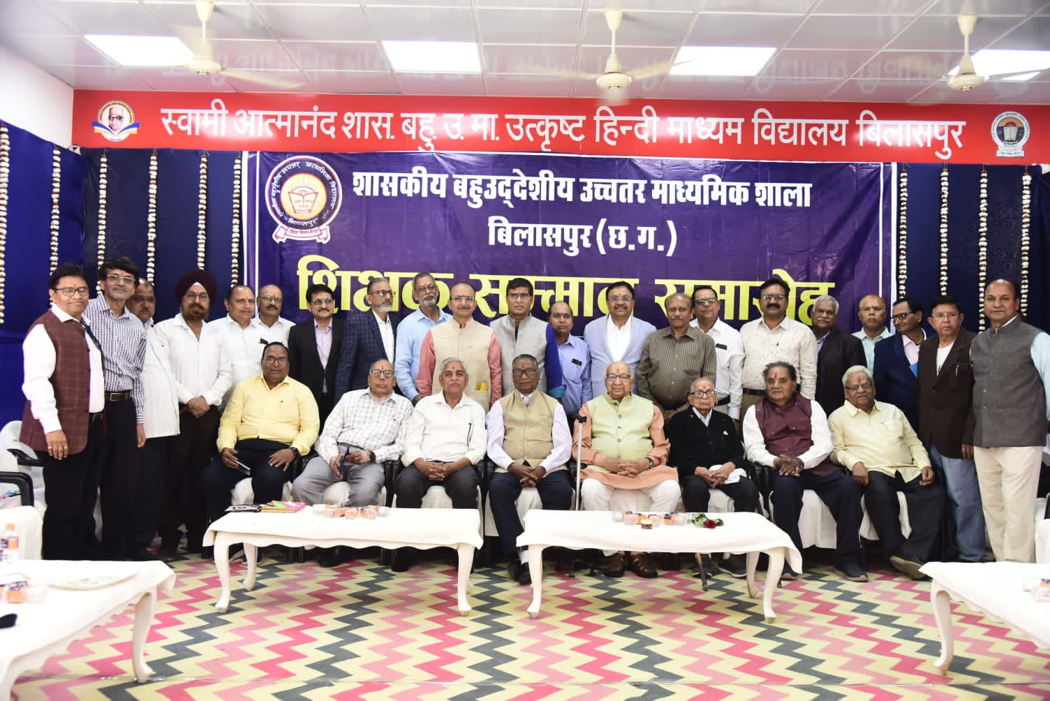 बिलासपुर। शासकीय बहुउद्देशीय उच्चतर माध्यमिक विद्यालय बिलासपुर में आज 1976 बेच के पूर्व विद्यार्थियों द्वारा शिक्षक सम्मान समारोह का आयोजन किया गया। अतिथियों ने मां सरस्वती वंदना कर कार्यक्रम का शुभारंभ किया।