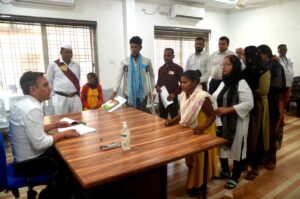 कलेक्टर सौरभ कुमार ने जिले के विभिन्न क्षेत्रों से आए आम जनता से मुलाकात कर उनकी समस्याओं को सुनी और उनके समाधान का आश्वासन दिया। करगीरोड कोटा की सुशीला साहू ने कोटा-रतनपुर मुख्य मार्ग चैड़ीकरण हेतु उनके अधिग्रहित भूमि का वास्तविक मुआवजा पांच वर्ष बाद भी प्राप्त नहीं होने पर आवेदन प्रस्तुत किया। कलेक्टर ने इसे टीएल में रखते हुए एसडीएम कोटा को आवश्यक कार्यवाही के निर्देश दिए। ग्राम पंचायत घोरामार के सरपंच व ग्रामवासियों ने आवेदन पत्र देकर शासकीय भूमि से अवैध कब्जा हटाने की मांग की। कलेक्टर ने इस मामले को टीएल में रखते हुए एसडीएम तखतपुर को आवश्यक कार्यवाही के निर्देश दिए। ग्राम गढ़वट से आए श्री एवसराम कश्यप ने दिव्यांग पेंशन प्रदाय करने का निवेदन करते हुए बताया कि उनके पास दिव्यांग प्रमाण पत्र होते हुए भी दिव्यांग पेंशन नहीं मिल रहा है। कलेक्टर ने उनके आवेदन को टीएल में रखकर मुख्य कार्यपालन अधिकारी जनपद पंचायत कोटा को आवश्यक निर्देश दिए। ग्राम बीजा के ग्रामीणों ने कोटवार विरेन्द्र रजक की शिकायत करते हुए बताया कि बीजा ग्राम के कोटवार ने 11 एकड़ की शासकीय भूमि को अपने नाम दर्ज करा लिया है और गांव में गुंडागर्दी करता है। इसलिए ग्रामवासियों ने उन्हें पद से हटाने के लिए निवेदन किया। कलेक्टर ने कोटवार को हटाने हेतु एस.डी.एम. तखतपुर को निर्देशित किया। इसी तरह श्रीमती शशि कौशिक ने प्रधानमंत्री आवास योजना के तहत आवास दिलाने हेतु निवेदन किया। कलेक्टर ने टीएल में रखते हुए आवास दिलाने हेतु निर्देशित किया। श्रीमती सविता बाई श्रीवास ने बताया कि विगत चार वर्षों से उन्हें मिल रही वृद्धा पेंशन विगत वर्ष से नहीं मिल रही है, जिससे उनकी आर्थिक स्थिति प्रभावित हो रही है। इस पर कलेक्टर ने वृद्धा पेंशन प्रदाय करने हेतु नगर निगम को निर्देशित किया। इसी प्रकार श्रीमती लाजवंती आसवानी द्वारा विधवा पेंशन योजना के तहत 08 माह पूर्व स्वीकृत होने के बाद भी पेंशन नहीं मिलने की बात कही। इस कलेक्टर ने सीएमओ बोदरी को पेंशन दिलाने के निर्देश दिए। सिरगिट्टी निवासी श्रीमती गायत्री यादव ने उनके नाती को निःशुल्क शिक्षा प्रदाय करने हेतु स्कूल में प्रवेश दिलाने का निवेदन किया। कलेक्टर ने उक्त आवेदन के निराकरण के लिए जिला शिक्षा अधिकारी को निर्देशित किया। श्रीमती शीला आहुजा ने निराश्रित पेंशन बंद होने एवं पुराना पेंशन नहीं मिलने की शिकायत करते हुए पेंशन राशि दिलाने हेतु निवेदन किया। कलेक्टर ने सी.एम.ओ. बोदरी को पेंशन दिलाने हेतु निर्देशित किया। ग्राम कर्रा निवासी मोहन लाल केंवट ने प्रधानमंत्री किसान सम्मान निधि के तहत ए लाभ दिलाने हेतु निवेदन किया। कलेक्टर ने इस हेतु उप संचालक को निर्देशित कि
