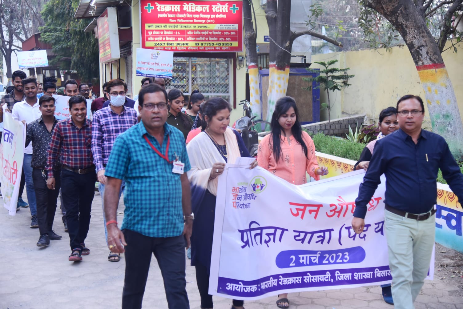 बिलासपुर। प्रदेश भर में चलाये जा रहे जन औषधि सप्ताह के अंतर्गत आज बिलासपुर में जन औषधि प्रतिज्ञा यात्रा निकाली गई। यह पदयात्रा जिला चिकित्सालय से सिम्स हास्पिटल तक निकाली गई। इस पदयात्रा को सिविल सर्जन डॉ. अनिल गुप्ता ने हरी झंडी दिखाकर शुभारंभ किया। भारतीय रेडक्रॉस सोसायटी के जिला समन्वयक श्री सौरभ सक्सेना ने बताया कि इस पदयात्रा के माध्यम से लोगों को जन औषधि केन्द्रों से जोड़ने का प्रयास किया जा रहा है और जन औषधि की गुणवत्ता और कम दर से लोगों को अवगत कराया जा रहा है, जिससे जन औषधि केन्द्र के माध्यम से कम दर में उपलब्ध कराई जा रही जेनरिक दवाईयों का अधिक से अधिक लोग उपयोग कर सकें और शासन की योजना का लाभ उठा सकें।