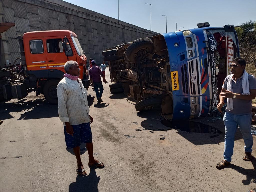 लोखण्डी-तुर्काडीह ओव्हर ब्रिज के पास अंशुमान ब्रदर्श बस एवं ट्रेलर की भिड़त हो गई है, जिससे यात्रीगण गंभीर रूप से घायल हो गये है सूचना मिलने के बाद कोनी थाना प्रभारी श्रीमती नुपुर उपाध्याय, उ.पु.अ. (प्रशिक्षु) के नेतृत्व में पुलिस स्टाफ एवं डायल-112 की टीम मौके पर पहुंची और आम नागरिकों की सहायता से घायलों को तत्काल डायल-112 एवं थाना के पुलिस पेट्रोलिंग वाहन की बिलासपुर। लोखण्डी-तुर्काडीह मार्ग पर हुई बस एवं ट्रेलर की भिड़त से 2 यात्री गंभीर रूप से घायल हो गए, मौके से ट्रेलर और बस चालक दोनों ही फरार हो गएl से भेजकर उपचार के लिए सिम्स में भर्ती किया गयाl आसपास के लोगों से पूछताछ करने पर जानकरी मिली कि अंशुमान ब्रदर्श में करीबन 15-20 यात्री बिलासपुर से खोंगसरा की ओर यात्रा कर रहे थे, करीबन 12ः45 बजे, घुटकू कोल डिपो की तरफ से विपरीत दिशा से आ रही कोयले भारी वाहन सिगमा ट्रेलर क्रमांक-CG10R-1902 के चालक नें ओव्हरब्रिज के नीचे रोड़ से आ रही अंशुमान बस क्रमांक-CG10G-1054 को जबरदस्त ठोकर मारकर दिया,जिससे बस पलट गई और बस में सवार दो यात्रियों को गंभीर चोटे आई एवं अन्य यात्रियों को साधारण चोटें आई है , जिन्हें तत्काल डायल-112 एवं थाना पेट्रोलिंग वाहन की सहायता से उपचार हेतु सिम्स अस्पताल भेजा गया , मौके पर ट्रेलर एवं बस ड्राईवर भाग फरार हो गये l
