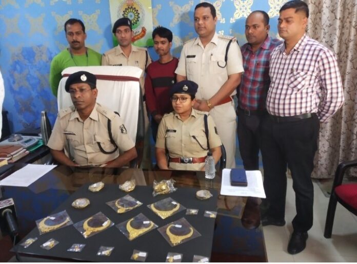 बिलासपुर। सदर बाजार में गहनों की पॉलिश करने वाला विष्णु सोनी कुछ दिनों पहले रितेश ज्वेलर्स से सोने के कंगन और लाकेट, हार पॉलिश के लिए लिया था इन गहनों की कीमत करीब 13 लाख है जिसे देख उसकी नियत खराब हो गयो और गहनों को लेकर वो फरार हो गया था जिसकी शिक़ायत प्रार्थी ने थाने में दर्ज करवाई थी एसीसीयू और कोतवाली पुंलिस ने मिल कर आरोपी को उत्तर प्रदेश के बनारस से गिरफ़्तर कर लाखों के गहने जप्त किये गए।