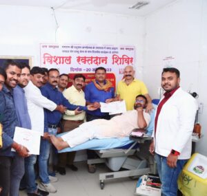 बिलासपुर। भगवान श्री परशुराम जन्मोत्सव के पांच दिवसीय कार्यक्रम के तहत आज दूसरे दिन सरदार वल्लभ भाई पटेल जिला चिकित्सालय में समग्र ब्राह्मण समाज संग परशुसेना द्वारा ब्राह्मण युवा आयाम के तत्वाधान में विशाल रक्तदान शिविर का आयोजन किया गया। जिसमें 51 यूनिट रक्तदान किया गया। किया गया रक्तदान ज़रूरतमंद लोगों के बेहतर स्वास्थ्य और जीवन रक्षा के काम आएगा. भगवान श्री परशुराम जन्मोत्सव कार्यक्रम को सार्थक करने के लिए समाज द्वारा विविध प्रकार के सामाजिक- सांस्कृतिक आयोजन किए जा रहे है,जिसके तहत अपनी सामाजिक उत्तरदायित्व का निर्वहन करते हुए आज रक्तदान शिविर का आयोजन किया गया। आज के शिविर में समग्र ब्राम्हण ब्राह्मण समाज के डॉ प्रदीप शुक्ला,चंद्रप्रकाश बाजपेयी,अरविंद दीक्षित,प्रभात मिश्रा, रूपचंद शास्त्री, डॉ विवेक बाजपेई, विनय शर्मा, राजकुमार तिवारी, सुशांत शुक्ला, अंकित गौरहा,ब्राह्मण युवा आयाम अध्यक्ष ज्योतिन्द्र उपाध्याय, रविन्द्र उपाध्याय, डॉ क्रांति शास्त्री, रतिन्द्र उपाध्याय, कमलेश दुबे, शिवा मिश्रा, अभिनव पाठक, अभिषेक चौबे, पियूष शुक्ला, आशुतोष मिश्र, श्रेष्ठ पाठक, पवन तिवारी, हर्ष तिवारी, डॉ सी बी मिश्रा, दीपेश अवस्थी, अमित कुमार शर्मा, विनय शुक्ला, भृगु अवस्थी, दीपक तिवारी, अनुग्रह टूटू मिश्रा, आदित्य शुक्ला, टिकेस्वर मिश्रा, अभिषेक दुबे, अनुभव शुक्ला, ऋषभ चतुर्वेदी, अंचल दुबे, सिद्धार्त पाण्डेय, सुमित तिवारी, महर्षि बाजपेई, वेदांत शुक्ला, रतन तिवारी ,प्रतिक तिवारी, आयुष तिवारी, मनीष शर्मा, ललित तिवारी, महिला विंग से डॉ वीणा तिवारी, सीमा पाण्डेय, चेतना,अभिषेक तिवारी,अनीश तिवारी,सौरभ तिवारी समेत बड़ी संख्या में विप्रजन उपस्थित रहें।