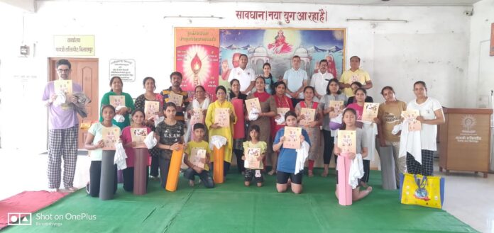 बिलासपुर। जहां जिले में अंतरराष्ट्रीय योग दिवस मनाने की तैयारियां जोर-शोर से चल रही है वहीं 30 जून को अंतरराष्ट्रीय योग दिवस के अवसर पर *एक विश्व एक स्वास्थ्य* थीम पर सवेरे 6:30 से 7:30 तक नियमित एवं निशुल्क योग क्लास विनोबा नगर बिलासपुर में रविंद्र सिंह ठाकुर (सदस्य छत्तीसगढ़ योग आयोग) के मार्गदर्शन में योग प्रशिक्षक सतीश बरेठ द्वारा आयुष मंत्रालय द्वारा जारी 21 जून अंतरराष्ट्रीय योग दिवस प्रोटोकॉल के तहत बड़ी संख्या में जन सामान्य को योगाभ्यास कराया गया और इस पावन बेला रथ यात्रा के शुभ दिवस एवं अंतरराष्ट्रीय योग दिवस के अवसर पर लोगों को योग टी-शर्ट, योग मैट (योग कीट) एवम् जून की भीषण गर्मी को देखते हुए साधकों को पानी बॉटल का वितरण किया गया साथ ही योग के प्रशिक्षित मास्टर ट्रेनरों को ट्रैक सूट प्रदान किया गया। इस अवसर पर योग गुरु सतीश बरेठ जी का श्री फल से सम्मान करते हुए रविंद्र सिंह ठाकुर जी ने उद्बोधन दिया की योग को अब हमें हर घर में प्रचार प्रसार करने का दायित्व प्रत्येक योग साधक को लेना होगा *हरघर हर आंगन* में लोगों को योग के प्रति जागरूक करना है ।
