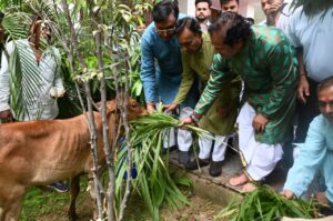 श्री उपाध्याय ने कृषि यंत्रों एवं गेड़ी की पूजा अर्चना कर की अच्छी फसल एवं खुशहाली की कामना