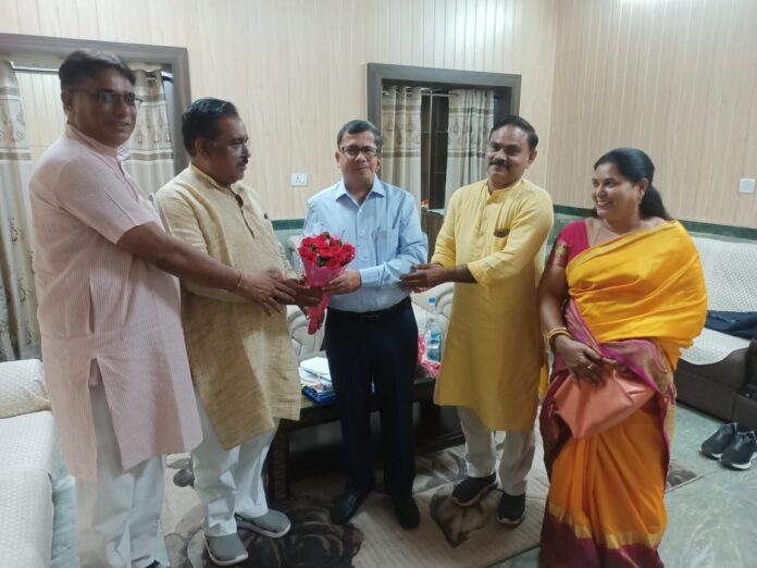 वासु सोनी, बिलासपुर। अरपा बेसिन विकास प्राधिकरण के उपाध्यक्ष अभय नारायण राय के नेतृत्व में सदस्य नरेन्द्र बोलर, महेश दुबे, श्रीमती आशा पाण्डेय ने आज नवपदस्थ जिलाधीश संजीव कुमार झा से मुलाकात की और बिलासपुर पदस्थापना की बधाई देते हुए अरपा बेसिन विकास प्राधिकरण के तहत चल रहे कार्यों की चर्चा की विशेष रूप से अरपा पर बन रहे दोनों बैराज पचरीघाट एवं शिवघाट कार्य की प्रगति पर चर्चा किये। वही नगर निगम द्वारा स्मार्ट सिटी के माध्यम से बनाये जा रहे तट संवर्धन, उद्यान एवं अन्य कार्यों की भी चर्चा हुई। जिलाधीश महोदय अधिकारियों के साथ उक्त कार्यों के निरीक्षण करने भी गये थे। उपाध्यक्ष अभय नारायण राय ने बताया कि जल्द ही मुख्यमंत्री के सलाहकार प्रदीप शर्मा, जिलाधीश बिलासपुर के उपस्थित में प्राधिकरण की बैठक प्राधिकरण कार्यालय में होगी। जिसमें प्राधिकरण के कार्यों का विस्तृत चर्चा की जायेगी। बैठक तीसरे सप्ताह में होगी।