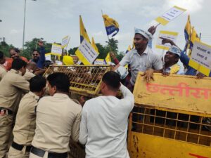 बिलासपुर। पानी, बिजली, सड़क, सफाई, रोजगार, शिक्षा, स्वास्थ्य, पेंशन आदि मुद्दों को लेकर आम आदमी पार्टी के प्रदेश कोषाध्यक्ष सरदार जसवीर सिंह, बिलासपुर जिला अध्यक्ष खगेश चंद्राकर, बिलासपुर जिला सचिव प्रमोद पटेल एवं अन्य साथियों ने बिल्हा विधायक धरमलाल कौशिक के निवास का घेराव कर पिछले 5 सालों का जवाब मांगा।