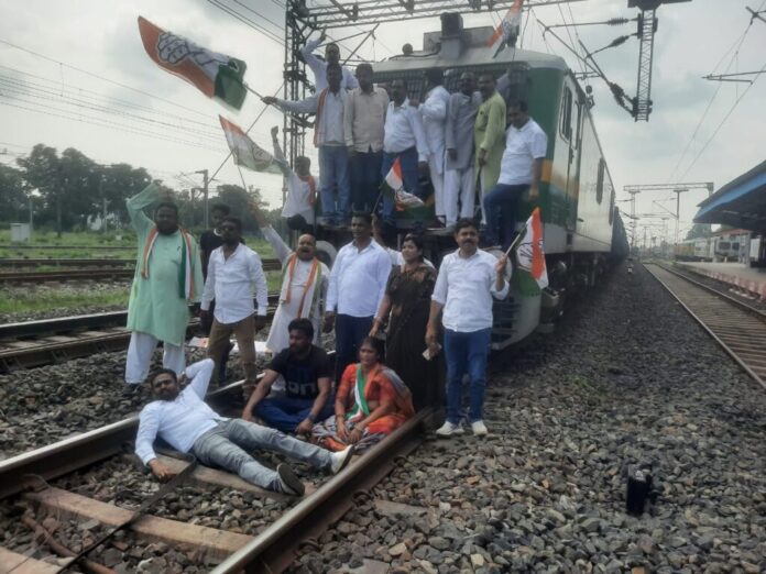 बिलासपुर। बुधवार को कांग्रेस का प्रदेश भर में रेल रोको आंदोलन हुआ। बिलासपुर में भी कांग्रेस कार्यकर्ता रेल रोकने रेलवे स्टेशन पर पहुंच गए। कार्यकर्ता पटरी पर लेट गए और जमकर नारेबाजी की। इस दौरान करीब 2 घंटे तक रेलवे ट्रैक बाधित रहा। कांग्रेसियों ने कहा कि, रेलवे को लेकर केंद्र सरकार की नीतियों का विरोध है। आंदोलन को देखते हुए रेलवे प्रशासन ने सुरक्षा के द्वारा सुरक्षा के पुख्ता इंतजाम किये थे।