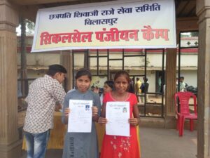इसी क्रम में छत्रपति युथ विंग बिलासपुर द्वारा सिकल सेल के पीडितो का प्रमाणपत्र बनवाने के लिए पंजीयन किया जा रहा है। यह कार्यक्रम लगातार जारी रहेगा। जिससे अधिक से अधिक मरीजो को लाभ प्राप्त हो सके।
