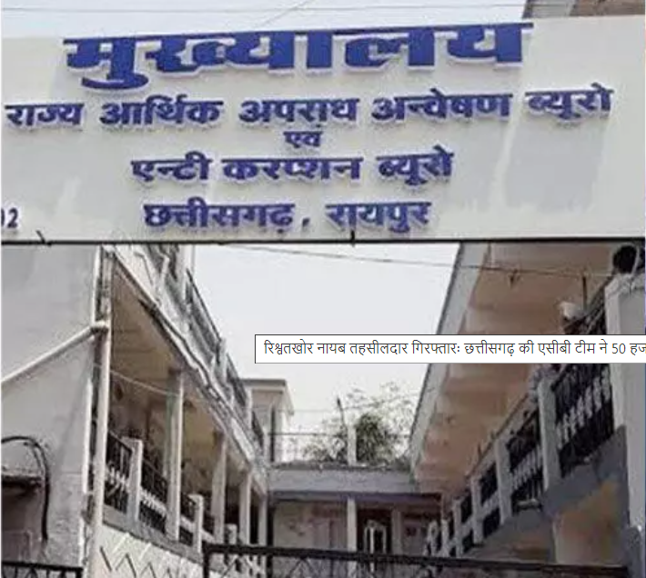 एसीबी टीम ने आज धमतरी के नायब तहसीलदार क्षीरसागर बघेल को 50 हजार रिश्वत लेते रंगे हाथ पकड़ लिया। कागजी कार्रवाई के बाद कल उन्हें कोर्ट के समक्ष पेश किया जाएगा। जाहिर है रंगे हाथ ट्रेप होने पर तीन महीने से पहले जमानत नही मिलती। अफसरों ने बताया कि रेवेन्यू केस में धमतरी नायब तहसीलदार 50 हजार रिश्वत मांग रहे थे। इसकी शिकायत एसीबी में हुई और एसीबी टीम ने जाल बिछाकर नायब तहसीलदार को पकड़ लिया।