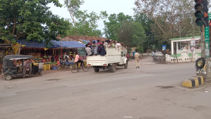 वासु सोनी जांजगीर चांपा। चार पहिया वाहनों में लोगों को ठूंस कर ले जाने की प्रथा शायद ही समाप्त हो पाएगी। बीते 20 मई को कवर्धा में हुई घटना से पूरा देश स्तब्ध है फिर भी लोगो को समझा पाना मुश्किल है। रविवार को जांजगीर के कचहरी चौक में भी ऐसा ही नजारा देखने को मिला। एक तरफ रथ यात्रा निकाली जा रही थी जिसकी व्यवस्था के यातायात के जवान लगे हुए थे तो वही चुपके से यातायात के जवान के सामने से लोगो से भरे पिकअप का चालक निकल रहा था। पिकअप में ठूंस कर लोग भरे हुए थे। वही पास में खड़े मीडियाकर्मी की नजर जब पड़ी तो उन्होंने वीडियो बनाना शुरू किया जिसे देखकर यातायात के जवान तत्काल एक्शन में आकर पिकअप जप्त कर थाने ले गए। लगभग दो से तीन पिकअप में गांव के लोगों को ठूंस कर ले जाया जा रहा था। सभी लोग जांजगीर से लगे आसपास गांव कार्यक्रम में सम्मिलित होने गए थे।