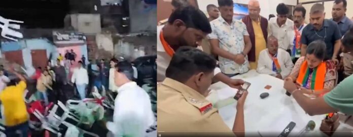 महाराष्ट्र में अमरावती की पूर्व सांसद और बीजेपी नेता नवनीत राणा शनिवार (16 नवंबर) को अमरावती जिले के दर्यापुर विधानसभा क्षेत्र के खल्लार गांव में युवा स्वाभिमान पार्टी के उम्मीदवार रमेश बुंदीले के समर्थन में रैली करने पहुंचीं थीं। रमेश बुंदीले प्रचार के लिए एक बैठक आयोजित की गई थी। इस बैठक में किसी बात पर बहस छिड़ गई, जिसने हंगामे का रूप ले लिया। इसके बाद कार्यकर्ता एक दूसरे पर कुर्सियां फेंकने लगे। घटना के वक्त नवनीत राणा बाल-बाल बच गईं। उन्हें वहां से हटाकर दूसरी जगह शिफ्ट किया गया।