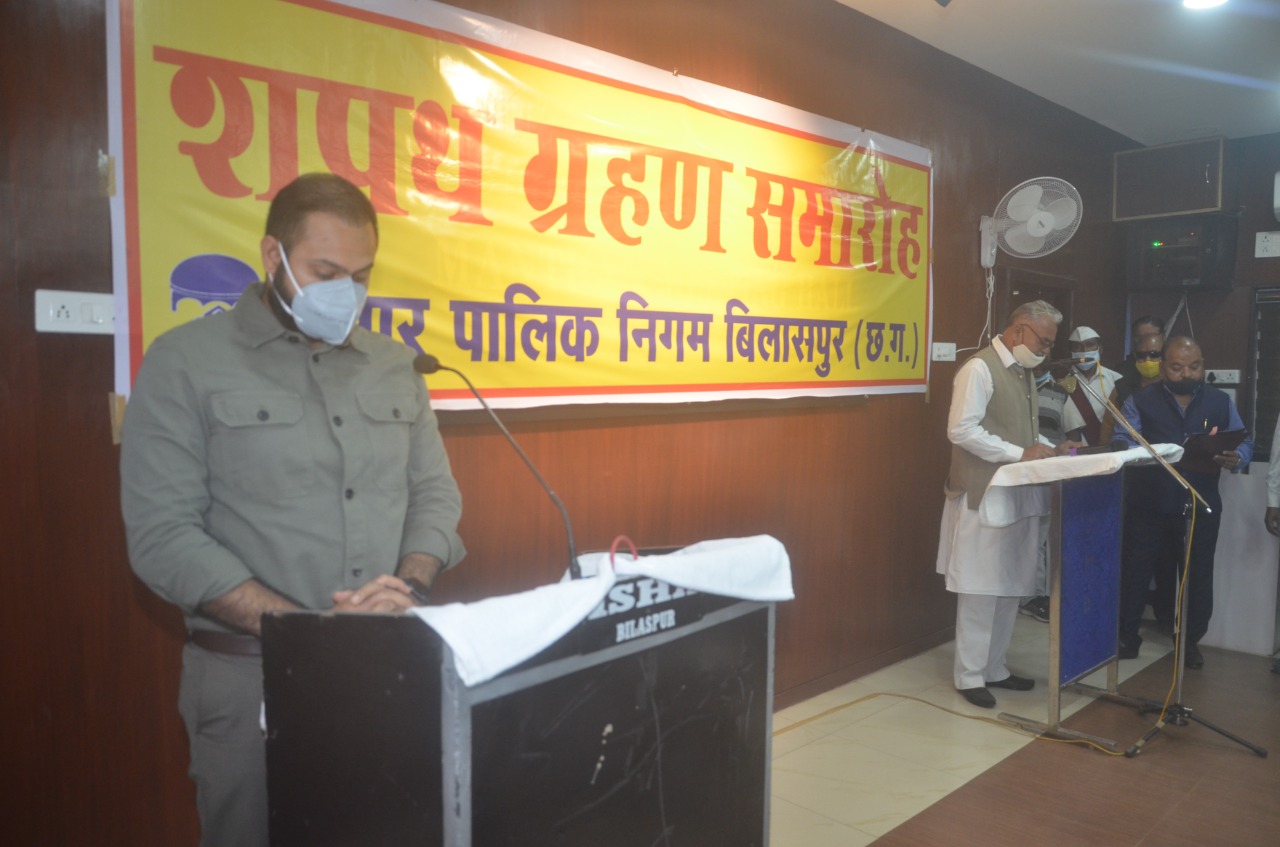 बिलासपुर। वार्ड क्र. 29 संजय गांधी नगर के नव निर्वाचित पार्षद शेख असलम द्वारा आज कलेक्टोरेट सभागृह मंथन में शपथ ग्रहण किया गया। कलेक्टर डॉ. सारांश मित्तर ने उन्हें सत्यनिष्ठा से अपने पद पर कार्य करने की शपथ दिलाई।