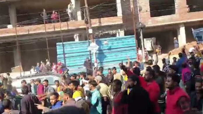 प्रदर्शन पर उतरे मजदूरों को भीड़ ने रोकने की कोशिस की लेकिन मजदूरों ने पुलिस की बात नही सुनी जब पुलिस ने सख्ती से हटाने की कोशिश की तो उन्होनें पथराव शुरू कर दिया. इस पत्थरबाजी में कई पुलिसकर्मी घायल हो गए. जिसे देखते हुए पुलिस प्रशासन के साथ सीआरपीएफ 6 बटालियन को मौके पर बुलाया गया और प्रदर्शनकारियों को रोकने व बात करने की कोशिश की गई.