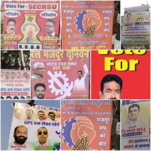 रेलवे में यूनियन को मान्यता प्राप्त करने के लिए जैसे-जैसे चुनाव की तारीख नजदीक आते जा रही है वैसे ही रेल कर्मचारियों के बीच गहमागहमी मची हुई है। चुनाव लड़ने वाले सभी रेल कर्मचारी संगठन अपने लुभाने वादों को लेकर अधिक से अधिक मत पाने के लिए रेल कर्मचारियों से संपर्क साध रहे हैं वैसे तो मजदूर कांग्रेस ने अपनी पूरी ताकत लगा दी है रेलवे क्षेत्र में बेनर पोस्टर लगाकर वह साबित कर रही है कि हम मान्यता प्राप्त करने के लिए चाहे जितना भी खर्च करना पड़े हम करेंगे भले हुए पैसा रेल कर्मचारियों से प्राप्त सहयोग राशि से प्राप्त किया हो।