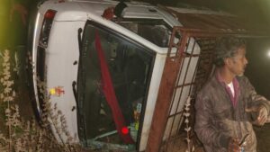 छत्तीसगढ़ के कोरबा जिले में रविवार रात एक बड़ा हादसा हो गया. 25 से अधिक लोग एक पिकअप वाहन में सवार होकर पिकनिक मना कर लौट रहे थे. इसी दौरा कटघोरा क्षेत्र के जटगा चौकी के ग्राम घुमानीडांड़ के पास अचानक गाड़ी पलट गई. इस हादसे में गाड़ी मे दबकर मासूम की मौत हो गई और 25 लोग घायल हो गए. घायलों में 7 की हालत गंभीर है. मौके पर पहुंची पुलिस ने राहगिरों की मदद से सभी घायलों को तत्काल कटघोरा स्वास्थ्य केंद्र में भेजा, जहां उनका इलाज जारी है और मर्ग कायम कर मासूम के शव को पोस्टमॉर्टम के लिए भेजकर आगे की कार्रवाई मे जुट गई है.