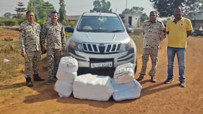 छत्तीसगढ़ के बस्तर में नशे के खिलाफ पुलिस को बड़ी सफलता मिली है. नगरनार पुलिस ने मादक पदार्थ गांजा तस्करी के खिलाफ कार्रवाई करते हुए एक सिल्वर रंग की महिंद्रा एक्सयूवी से 157.96 किलो गांजा बरामद किया है, जिसकी बाजार कीमत करीब 15,79,600 रुपये बताई जा रही है. इसके साथ ही वाहन की कीमत लगभग 10 लाख रुपये है. वहीं आरोपी तस्कर पुलिस को देखते ही घने जंगलों के रास्ते भाग निकला.