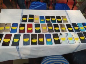 जीआरपी और आरपीएफ की संयुक्त कार्यवाही में ट्रेनों से मोबाइल पार करने वाले चार आरोपियों को रेलवे पुलिस ने पकड़ने में कामयाबी हासिल की है। इनके पास से 36 नग मोबाइल बरामद किया गया है। ट्रेनों में सफर के दौरान यात्रियों द्वारा चार्जिंग के लिए मोबाइल लगाए जाने पर रात में मौका देख कर यह लोग मोबाइल पार कर देते थे। घटना को अंजाम देते वक्त अगर यात्री जग जाए तो यह मासूम बन कर यह कहते थे कि उनका मोबाइल निकाल कर ये अपना मोबाइल चार्ज करना चाहते थे और अगर यात्री ना जागे तो चुपके से उसका मोबाइल लेकर चलते बनते थे।