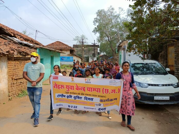 डभरा। नेहरु युवा केंद्र संगठन चांपा युवा कार्यक्रम एवं खेल मंत्रालय भारत सरकार के तत्वधान में नगर पंचायत डभरा में राष्ट्रीय कृमि मुक्ति दिवस कार्यक्रम का आयोजन किया गया ।कार्यक्रम सायोजक विरेंद्र खंडेलवाल(अध्यक्ष यूथ फॉर डभरा एवं पूर्व राष्ट्रीय युवा स्वंसेवक) द्वारा सुभारंभ किया गया। कार्यक्रम में मुख्य अतिथि राम अवतार चंद्रा (ग्रामीण स्वस्थ अधिकारी) एवं विशिष्ठ अतिथि कु देवकुमारी उपाध्याय (अध्यक्ष सीता स्व सहायता समूह) ,लाला उपाध्याय (वरिष्ठ पत्रकार) उपस्थित रहे। कार्यक्रम में कृमि मुक्ति अभियान के तहत लोगो को जागरूक एवं बचाव संबंधी जानकारी दिया गया इसके पश्चात नगर के वार्ड क्रमांक 8 में रैली निकाली गई ।मुख्य अतिथि चंद्रा जी द्वारा कृमि के लक्षणों और बचाव संबंधी टैबलेट के बारे में जानकारी दिया गया साथ ही कार्यक्रम सायोजक द्वारा बताया गया की युवा शक्ति हमारी एक विशेष ताकत है जिससे हम लोगो को अत्यधिक जागरूक कर सकते है और कृमि मुक्त भारत का निर्माण कर सकते है। कार्यक्रम में मुख्य रूप से पुस्पेंद्र चंद्रा ,नेहा, भारती, तमन्ना उपाध्याय , आदि उपस्थित रहे।