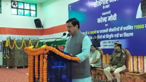 केंद्र सरकार के रोजगार मेले में प्रधानमंत्री नरेंद्र मोदी ने आज वर्चुअली 71,000 युवाओं को नियुक्ति पत्र सौंपा. आरंग के ग्राम भिलाई स्थित सीआरपीएफ कैंप में आयोजित रोजगार मेला में केंद्रीय राज्य मंत्री (आवास एवं शहरी) तोखन साहू ने 450 अभ्यर्थियों को नियुक्ति पत्र सौंपा। इस दौरान अभनपुर विधायक इंद्रकुमार साहू, सीआरपीएफ अपर महानिदेशक अमित कुमार, डीआईजी अजय सिंह भी उपस्थित रहे। इस अवसर पर केंद्रीय राज्य मंत्री तोखन साहू ने सरकारी नौकरियों में चयनित अभ्यर्थियों को बधाई देते हुए कहा कि पहले ग्रामीण क्षेत्रों में मेले का आयोजन होता था, जिसमें लोग मेले का आनंद लेते थे।