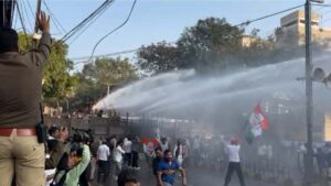 छत्तीसगढ़ युवा कांग्रेस ने आज मुख्यमंत्री निवास का घेराव करने का आह्वान किया. बड़ी संख्या में युवा कांग्रेस कार्यकर्ता नगर निगम गार्डन से सभा कर मुख्यमंत्री निवास की ओर कूच करने निकले हैं. मुख्यमंत्री निवास की ओर बढ़ते कार्यकर्ताओं को रोकने के लिए पुलिस ने सख्त रुख अपनाया. पुलिस ने प्रदर्शनकारियों को रोकने के लिए वॉटर कैनन का इस्तेमाल किया, जिससे प्रदर्शनकारी कार्यकर्ता आक्रोशित हो गए. इस दौरान कार्यकर्ताओं और पुलिस के बीच जमकर झूमाझटकी भी हुई.