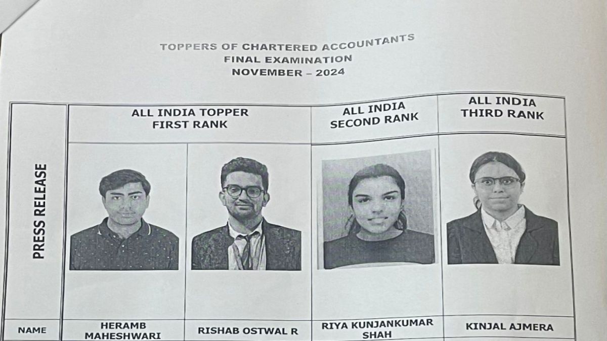इंस्टीट्यूट ऑफ चार्टर्ड अकाउंटेंट्स ऑफ इंडिया ने सीए फाइनल परीक्षा का परिणाम देर रात जारी कर दिया है. (CA) नवंबर परीक्षा का फाइनल रिजल्ट में इस साल हेरंब माहेश्वरी और ऋषभ ओस्टवाल आर ने ऑल इंडिया रैंक 1 हासिल किया है. दोनों ने 84.67 फीसदी अंक हासिल किया है. आईसीएआई सीए फाइनल परीक्षा नंवबर 2024 में आयोजित की थी ग्रुप I CA फाइनल परीक्षा 3, 5 और 7 नवंबर को आयोजित की गई थी. वहीं ग्रुप II परीक्षा 9, 11 और 13 नवंबर को आयोजित की गई थी. कैंडिडेट्स अपना रिजल्ट ICAI की आधिकारिक वेबसाइट icai.nic.in पर देख सकते है.