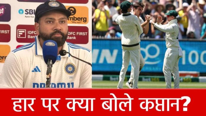 मेलबर्न टेस्ट में मिली हार के बाद रोहित शर्मा ने कहा ‘मैं आज जहां खड़ा हूं, वहीं खड़ा हूं, कप्तान और बल्लेबाज के तौर पर कुछ नतीजे हमारे पक्ष में नहीं रहे, यह निराशाजनक है. मानसिक तौर पर यह परेशान करने वाला है, लेकिन अभी स्थिति यही है, एक टीम के तौर पर हमें और मुझे कुछ चीजों पर गौर करने की जरूरत है.’