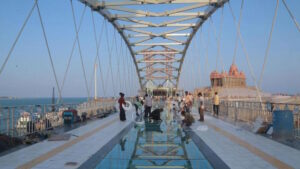 कन्याकुमारी में विवेकानंद स्मारक और तिरुवल्लुवर प्रतिमा को जोड़ने वाले कांच के पुल का सोमवार को तमिलनाडु के मुख्यमंत्री एमके स्टालिन ने उद्घाटन किया. कन्याकुमारी में हाल ही में खोला गया कांच का पुल विवेकानंद रॉक मेमोरियल को तिरुवल्लुवर प्रतिमा से जोड़ता है.