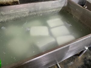 बताया गया कि करीब एक क्विंटल दूध पाउडर में 30 किलो वनस्पति घी और इतना ही नारियल तेल मिलाया जाता है। उसके बाद इस मिश्रण को करीब 80-90 डिग्री तापमान में उबाला जाता है। इस प्रक्रिया से ऐसा सफेद लिक्विड तैयार होता है। उसके बाद उसे सांचे में ढालकर जमाया जाता है। लिक्विड को जल्दी ठंडा करने और देर तक जमाए रखने के लिए बर्फ का उपयोग किया जाता है।