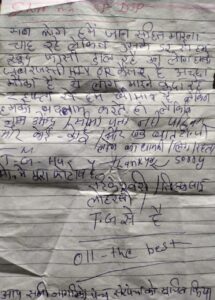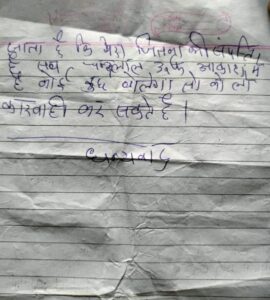 जानकारी के मुताबिक, अर्जुनी थाना में एक ट्रांसजेंडर की संदिग्ध परिस्थिति में फांसी पर लटके मिले शव मामले में नया मोड़ आया है. दरअसल, पुलिस ने मृतक के पॉकेट से एक सुसाइड नोट बरामद किया है, जिसमें मृतक ने खुद को ट्रांसजेंडर बताया है. मृतक ने अपना नाम तिलक और टिकेश्वरी साहू लिखा है. मृतक ने कुछ लोगों पर हत्या की कोशिश का आरोप लगाया है और ये भी लिखा है कि वो उसी दहशत के कारण आत्महत्या कर रहा है.