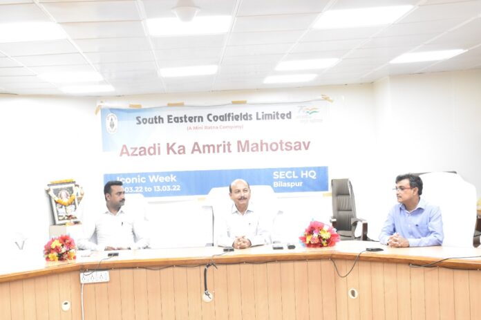बिलासपुर। कोयला मंत्रालय भारत सरकार के तत्वावधान में आजादी का अमृत महोत्सव का विशिष्ट सप्ताह (7 से 13 मार्च 2022 तक) मनाया जा रहा है जिसके अंतर्गत मंत्रालय व उसकी अनुषंगी कम्पनियों में विविध आयोजन किए जा रहे हैं। आज एसईसीएल मुख्यालय बिलासपुर प्रशासनिक भवन स्थित सीएमडी सभाकक्ष में ’’भारतीय स्वतंत्रता संग्राम के अनकहे नायक: विशेष संदर्भ छत्तीसगढ’’़ विषय पर रोचक व ज्ञानवर्धक व्याख्यान का आयोजन किया गया जिसके वक्ता डॉ. प्रवीण कुमार मिश्रा विभागाध्यक्ष, इतिहास गुरू घासीदास विश्वविद्यालय थे।